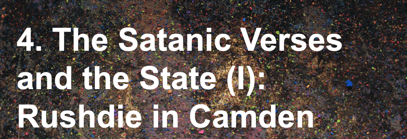 This first of two chapters on The Satanic Verses discusses Salman Rushdie’s conflicted status as a critic of state racism and a feted literary celebrity that criticised multiculturalism. Beginning with his quarrel with Stuart Hall over the political and aesthetic commitments of ‘black’ art in 1987, it then shifts to two key sources shaping Rushdie’s early polemical essays and the London sections of The Satanic Verses: racism as an intellectual problem rooted in white society as discussed in Ann Dummett’s A Portrait of English Racism (1973), and the migrant underclass Rushdie encountered through the grassroots Camden Committee for Community Relations. The chapter concludes by tracing the emerging tensions between Rushdie’s idea of an anti-racist critical practice and his evolving commitment to free literary expression.